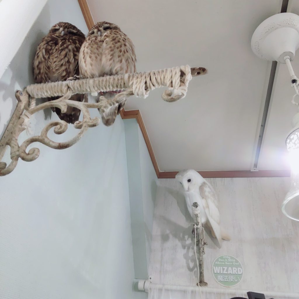 説明が終わると店内を動き回れるようになるんですが、全員止まってるし鳴いてもいないのでフクロウ40羽いる空間ってマジ!?になります。上にもいるのに気づけない。