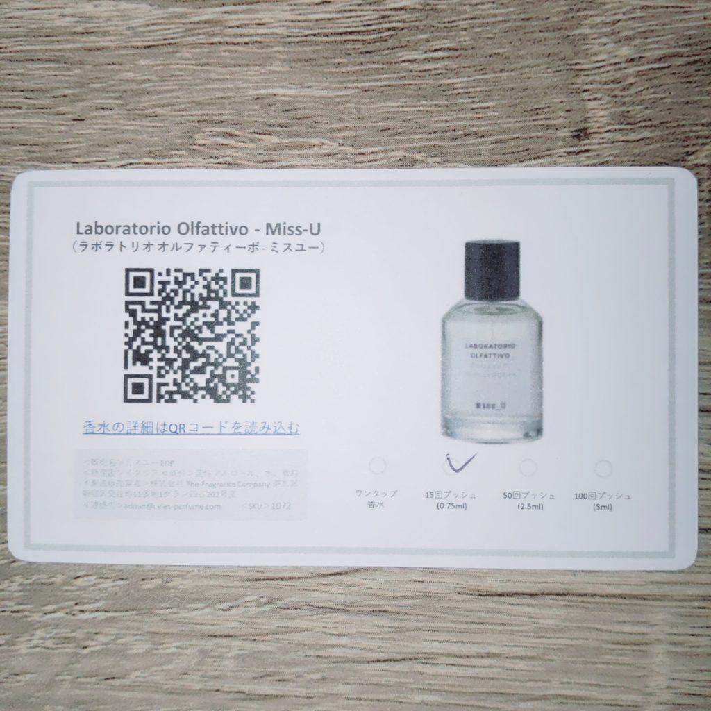 Need_Uが香水から肌への愛のメッセージのように、Miss_Uは肌から香水へのラブレターです。囁きのような静かなる叫び、愛する人の肌に触れたいという渇望を美しくミステリアスに描きます。バニラとウッディーノートのあたたかな愛撫、不在の存在を求める願望はシナモン、花椒、アンブロックスによってスパークします。解読不能な本能に基づく愛のコードはこのミステリアスで甘美な香りの中で欠乏感を持ち燻っています。 【ユニセックス/オリエンタル/オードパルファン】