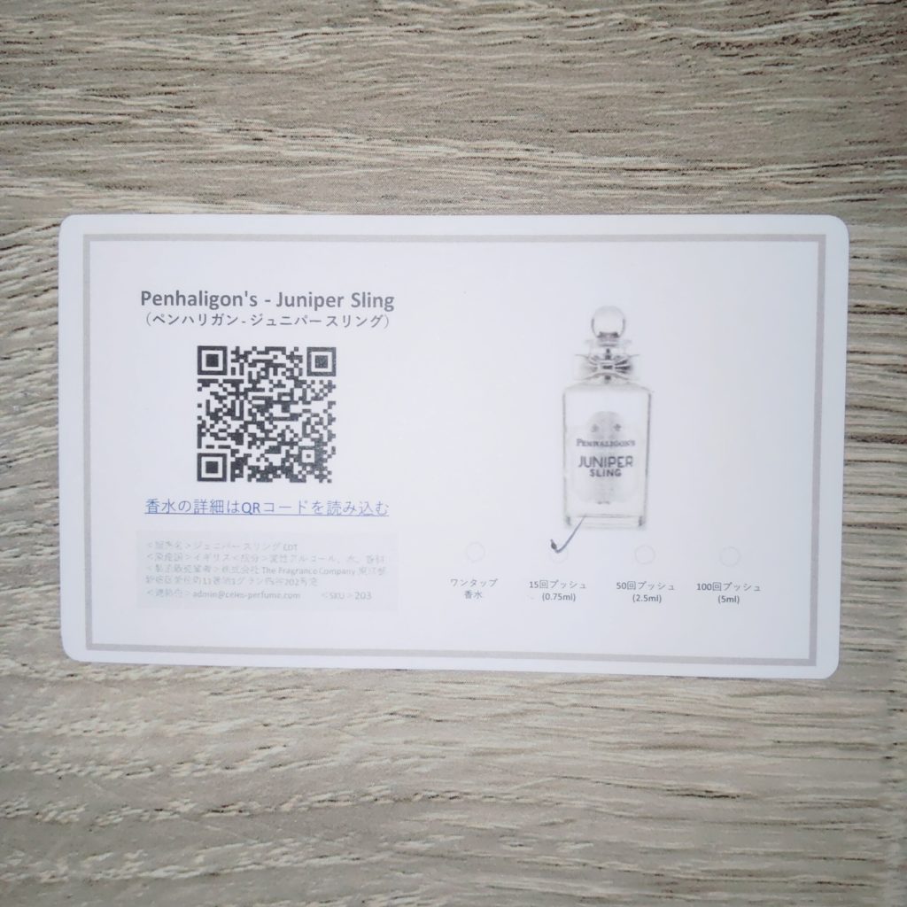 一瞬ジンジャエールみを感じた…メイン香料が「ジュニパーベリー」っていうものらしく、調べたらセイヨウネズっていうヒノキ科の球果?らしくて、日本語だと杜松果っていうらしいです。ウッディ的な香りですね。いや確かにこれ若い男かも…ユニセックスだけと女性はこのイメージあんまないかも…